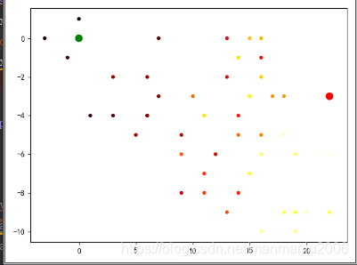plit.scatter(0,0,c='green',edgecolors='none',s=100) //图二 重新绘制原点、终点 plit.scatter(rwn.x_values[-1],rwn.y_values[-1],c='red',edgecolors='none',s=100) //图二 重新绘制原点、终点 plit.show() keep_running = input("make anoter walk?(y/n):")